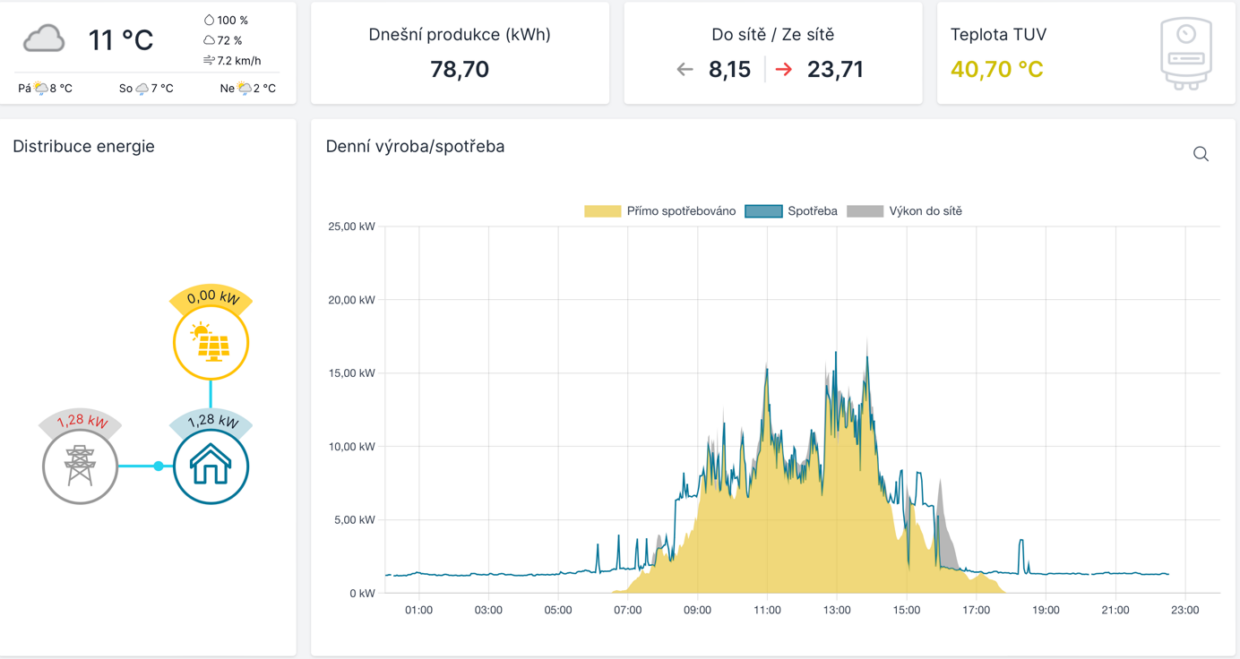 Příklad grafu výroby/spotřeby ze systému SolarPilot