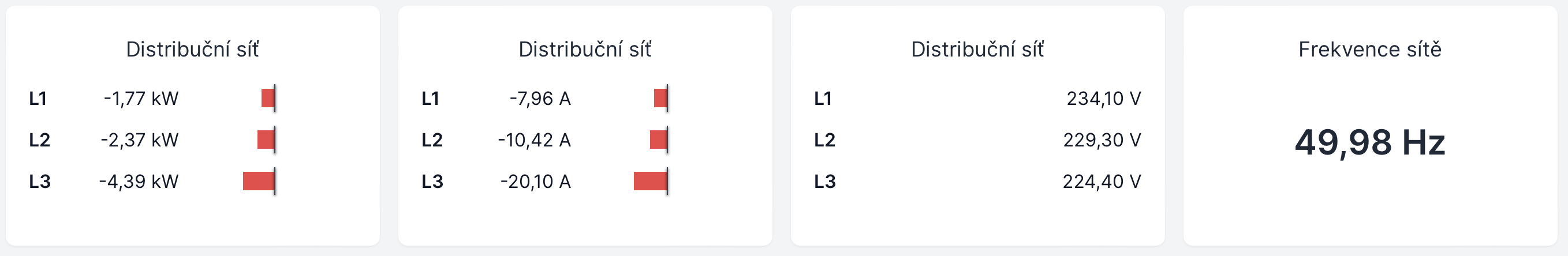 Dostupné jsou přehledně v systému i informace o zatížení jednotlivých fází (viz obrázek výše).