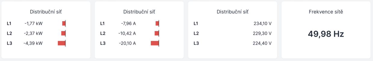 Zatížení jednotlivých fází