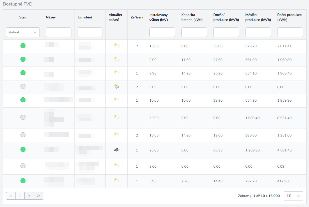 Montážní firmy mají jiné potřeby než jednotliví majitelé, a proto jsme pro ně připravili speciální dashboard, ve kterém lze přehledně vidět všechny instalace FVE. Každou FVE lze samozřejmě rozkliknout a podívat na detailní data.