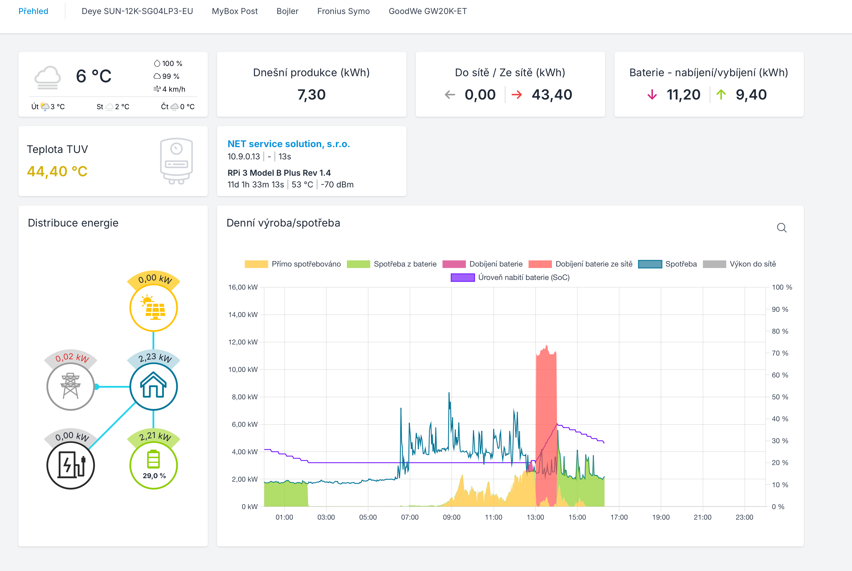 - Celkového přehledu o provozu FVE.
