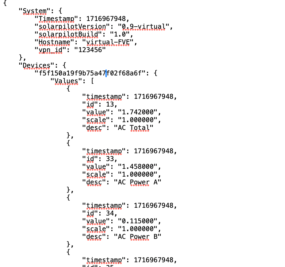 Naše API umožňuje třetím stranám odesílat data z fotovoltaických elektráren v předem definovaném formátu JSON. Předpokladem je, že data musí být zasílána v pravidelných intervalech – standardně každých 20 sekund, ale lze pracovat i s kratšími časovými intervaly (např. 1s). Na základě těchto dat automaticky ukládáme a spravujeme kompletní historii provozních dat, včetně: